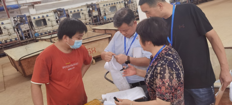 2022年9月13日-14日,由江苏省纺织工业协会组织,对沙印集团射阳印染有限公司的56名染色机操作工,开展了纺织染色工(染色机操作工)中级职业技能等级认定工作。评审组由3名院校及企业一线生产技术专家组成,评审组组长由我校数字化染整技术专业教师岳仕芳担任。