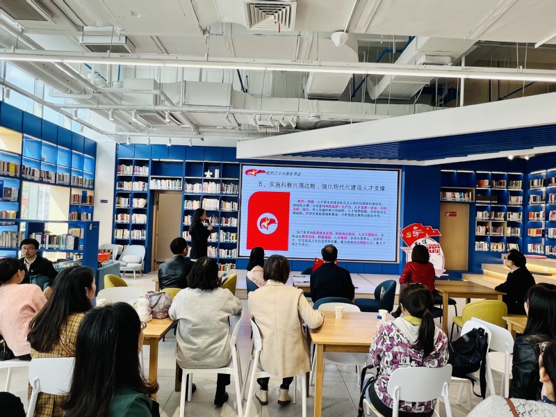 教师党员从党的二十大报告15个部分中逐一分别朗读了自己体会最深的段落,并结合日常生活工作分享了感悟,整个学习过程气氛活跃、热烈、务实。刘俊丽老师率先发言,引发了大家的共鸣,她表示自己有责任和义务扛起推动学校高质量发展的大旗,以高昂的斗志和饱满的热情投入到工作当中去。赵为陶老师表示作为一名教师,要牢记立德树人的使命,认认真真上好每一堂课、培养好每一位学生,为培养祖国接班人交上一份优质的答卷。