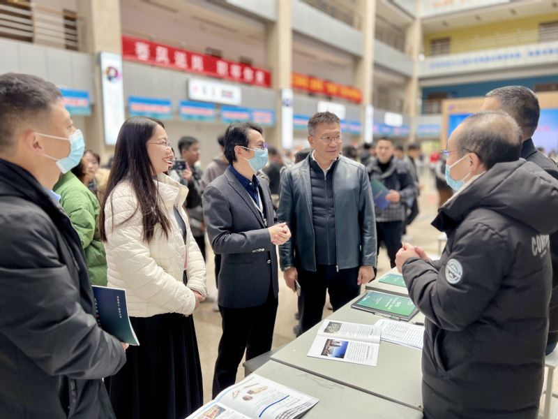 招聘会现场人头攒动、秩序井然、气氛热烈。企业通过发放宣传册、KT板展示、面对面交流等方式,详细介绍企业的用工方式、培训计划、职业前景等同学们关心的问题。毕业生手持简历穿梭在各个展台,积极与招聘人员交流,主动了解用人单位的情况。校党委副书记、院长洪霄等领导与参会企业、毕业生们亲切交流,进一步了解当前各行业、企业发展趋势、用人需求及毕业生求职意向、就业心理期待、就业过程中遇到的困难等情况,为用人单位和毕业生双方牵线搭桥当起了“红娘”。
