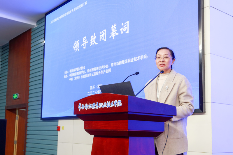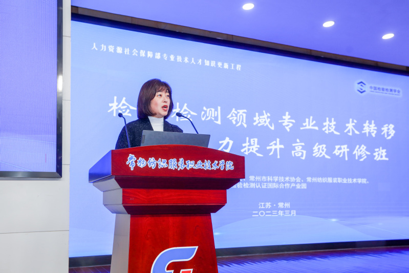 2023年3月24日,为期5天的“检验检测领域专业技术转移转化能力提升”高级研修班在常州纺织服装职业技术学院(以下简称“常州纺院”)顺利结业。出席高研班结业典礼仪式的嘉宾有:中国检验检测学会常务副会长生飞、技术总工刘华琳、专家郜锦丽等;常州纺院党委委员副院长赵玲珍,常州纺院纺织学院领导出席了结业仪式。结业仪式由纺织学院院长郭雪峰主持。