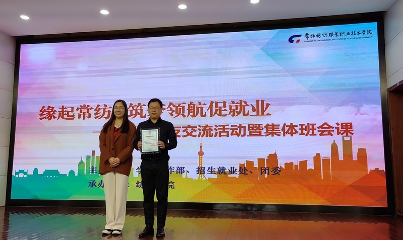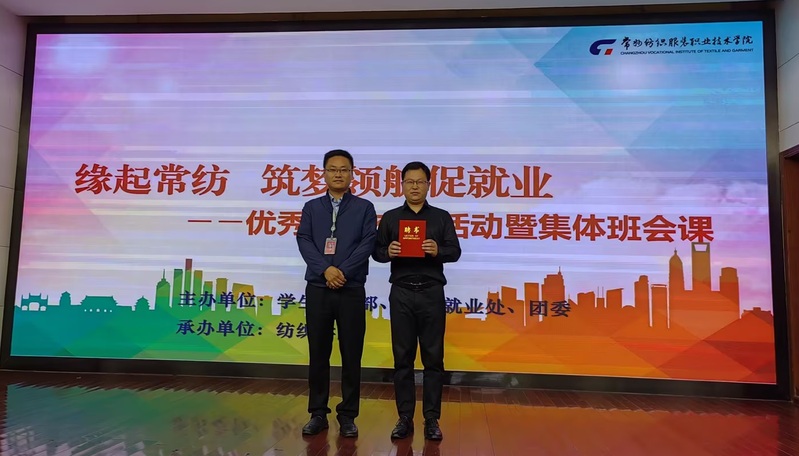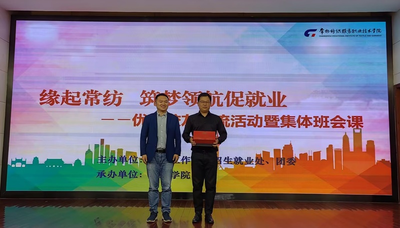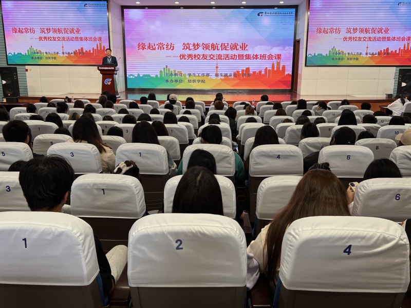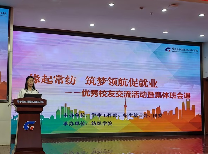 为深入学习贯彻习近平总书记对做好高校毕业生就业工作的重要指示批示精神,积极响应教育部“春季促就业攻坚行动”要求,多措并举全力促进毕业生高质量充分就业,引导大学生立足实际、找准定位,树立理性平实的择业观、就业观、劳动观,由学生工作部、招生就业处、团委共同主办,纺织学院承办的“缘起常纺,筑梦领航促就业”集体班团课暨优秀校友讲座于5月24日下午在图文报告厅举行。活动邀请了我校优秀校友,江苏亚邦药业集团无锡区域经理、常州市新北区赣榆商会党支部副书记、常州市天汉企业管理咨询有限公司总经理夏浩作为主讲嘉宾,分享职业成长历程。学生工作部部长李洁琦、团委书记朱鹏、纺织学院党总支书记高妍、招生就业处副处长李圣峰、纺织学院21级全体班主任及21级全体学生出席了活动。活动由纺织学院党总支副书记史京军主持。