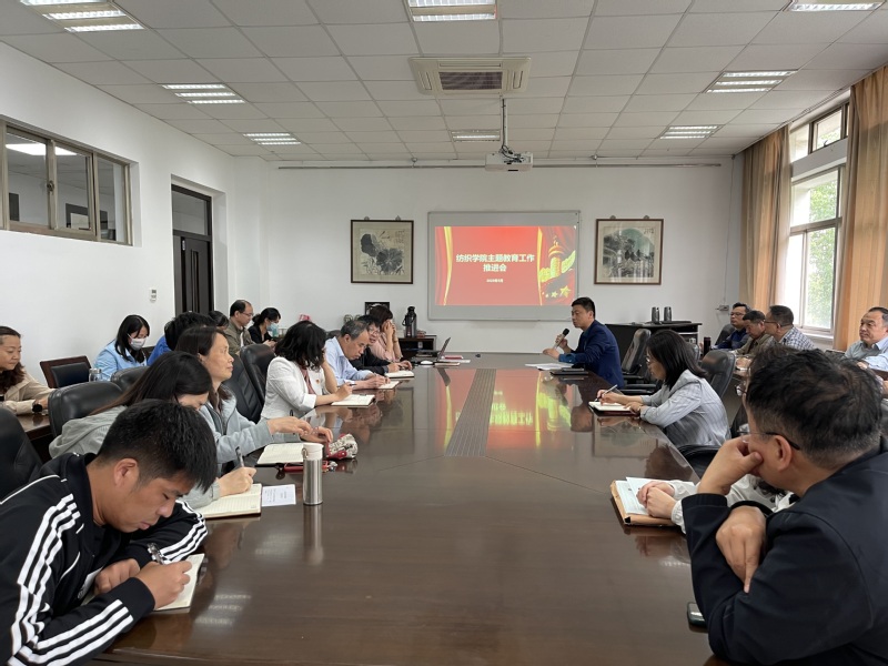 为了深入开展学习贯彻习近平新时代中国特色社会主义思想主题教育,纺织学院于本周三下午召开政治学习暨主题教育工作推进会,学院全体教师参加。此次会议传达了学校主题教育相关会议精神,传达了学校领导在主题教育读书班的交流研讨成果,会议要求全体党员紧跟核心强忠诚、理论武装强本领、廉洁奉公强宗旨、推动发展强担当,把理论学习、调查研究、推动发展、检查整改四个方面贯通融合,扎实推进主题教育。会议最后,全体教师集体观看了主题教育专题学习片《嘱托·奋进》。