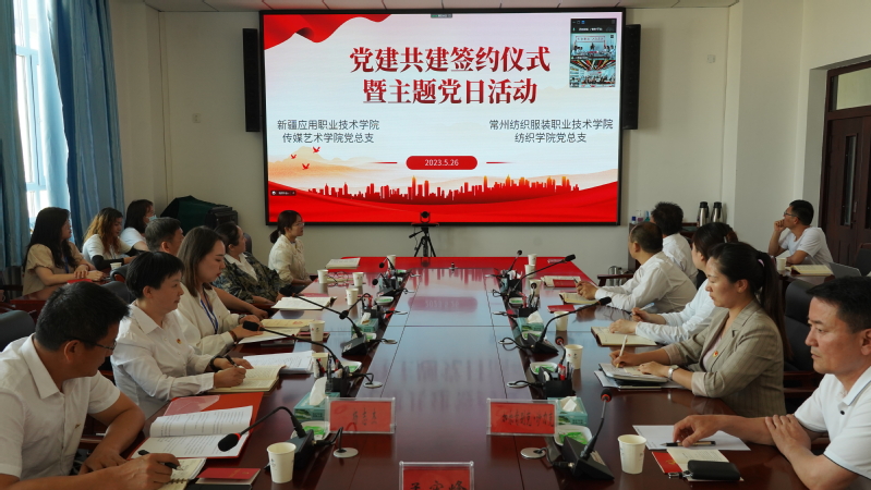 5月26日下午在纺织学院科技馆,纺织学院党总支与新疆应用职业技术学院传媒艺术学院党总支通过云签约的形式,开展党建共建签约暨主题党日活动。
