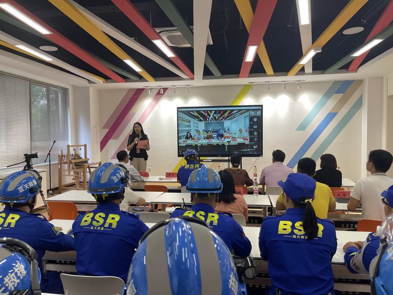 常州蓝天救援队队长刘胜介绍了救援队基本情况。常州蓝天救援队是一支常州地区自发组织的公益队伍,主要承担了救援行动、应急避险培训、防灾避险知识宣传等工作。蓝天救援队地震组组长包海峰系统讲解了一旦发生地震,逃生与避险规范动作和程序,并做了现场教学示范。