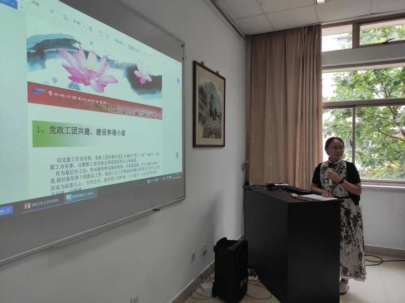 会上,纺织学院院长郭雪峰围绕学院工作进行了总结和回顾,并做财务工作报告。她肯定了全体教师的辛勤付出和取得的成绩,并就学院暑期及下学期工作计划与重点任务进行了汇报和部署。她提出,下一阶段,纺织学院需要继续抓紧落实学校“十四五”规划和党政工作要点,以产教融合为抓手,搭建高层次人才平台,强化专业内涵建设,科研创新稳中求进,育训并举务求实效。纺织学院分工会主席王明芳对学院2022年至2023年度工会工作进行总结并做工会财务工作报告,并就提案征集、立案及落实处理情况做了汇报。纺织学院副院长曹红梅、卞克玉还就教学科研等重点工作进行了汇报和部署。