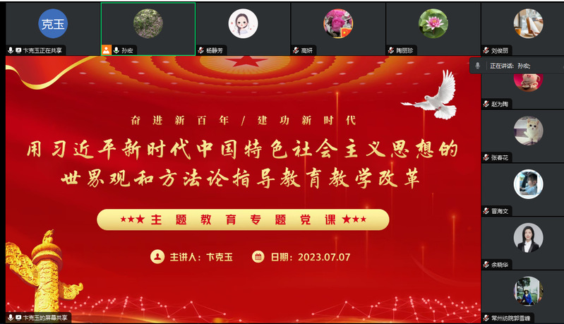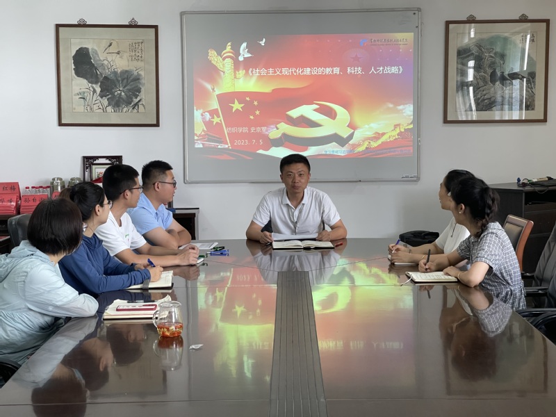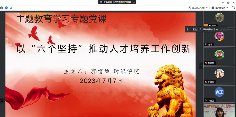 党总支副书记史京军以《社会主义现代化建设的教育、科技、人才战略》为题、学院副院长曹红梅以《以学增智,提升政治能力》为题、学院副院长卞克玉以《用习近平新时代中国特色社会主义思想的世界观和方法论指导教育教学改革》为题,分别结合科技创新、教学管理、资源管理、学生管理等方面工作,将主题教育与学院发展相结合,以小切口引出大思想,用通俗易懂的语言系统剖析了相关理论知识,对照“十四五”规划、学校党政工作要点等要求,讲纺织学院高质量发展路径与实践。强调要切实开展调查研究、解决问题、推动改革,号召党员同志们在纺织学院高质量快速发展的征程中践行使命、再立新功,勉励学生党员们学以致用、艰苦奋斗、勇担时代使命。