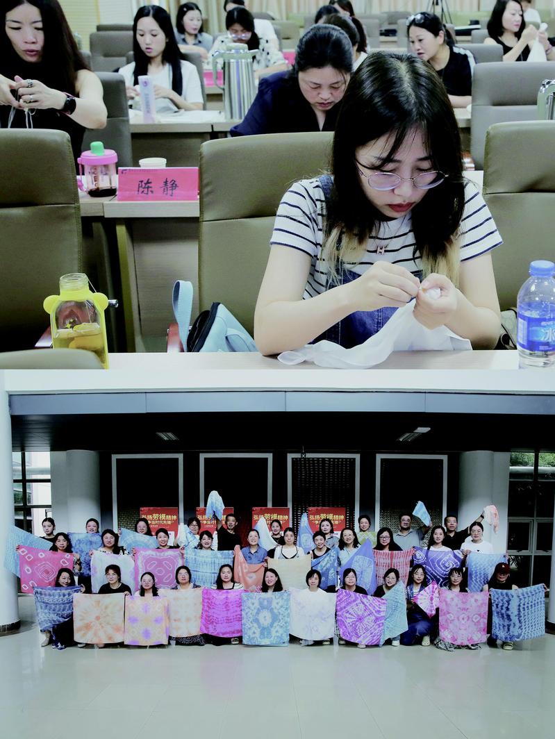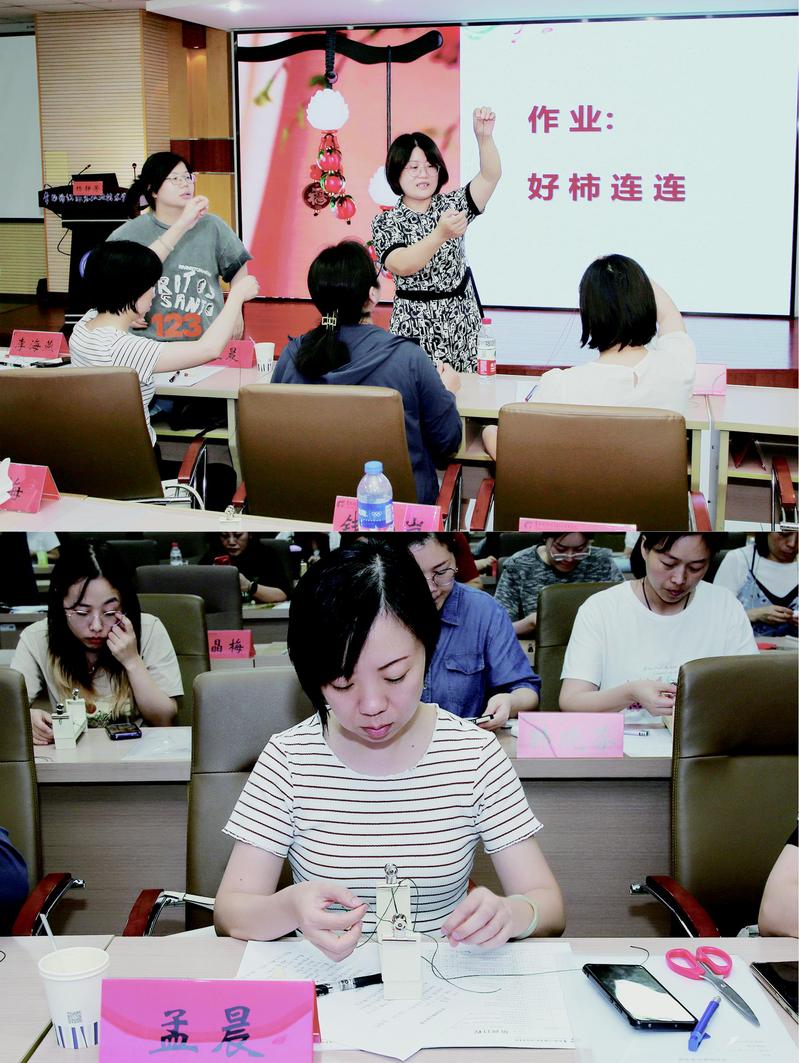 本次培训班还邀请学校江苏省教学名师朱红、全国教学能力大赛一等奖获得者李蔚分别作了《以学生为中心的课程设计与教学实施路径》、《服装专业课程体系构建》的专题报告。国际标准化纺织品技术委员会第一分技术委员会主席关晋平博士,苏州大学科研处处长刘开强博士,常州老三集团有限公司妇联主席、全国劳模、全国人大代表李承霞,常州纺织工程学会会长张国成等8位来自纺织服装产业界和教育界的校外专家学者分别从纺织服装国际化标准、教科研能力提升、行业发展与人才培养等方面作了精彩的专题报告。此次,本次培训班还组织学员赴苏州丝绸博物馆、苏州上久楷丝绸科技文化有限公司、SGS、常州虹纬纺织有限公司、天虹大明1921创意园、学校纺织科技文化馆等进行了现场实践调研。实践创作体验了手工扎染、手工编织等非遗特色项目,学员们创作热情高涨,作品各具特色,成就感满满。