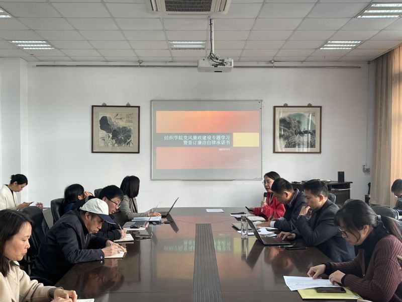 为深入开展主题教育,落实党的建设要求,全面从严治党,结合党员教师队伍反腐倡廉教育,积极营造倡廉、树廉、学廉、守廉的良好氛围,11月15日下午,纺织学院党总支组织召开党风廉政建设专题学习暨廉洁自律承诺书签订仪式,纺织学院全体教师参会。