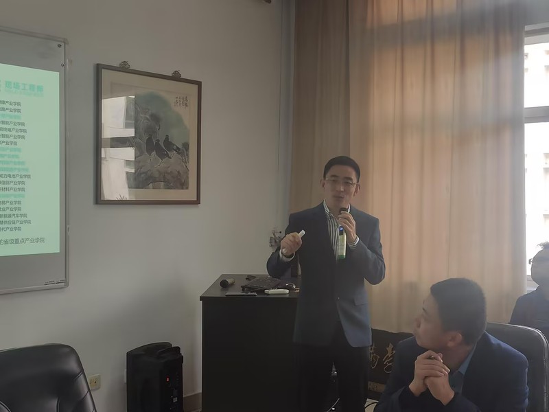 随后,孙延建做了“现场工程师项目高质量发展”的专题报告,围绕江苏省产教融合服务平台的运行情况、现场工程师项目背景、建设要求、遇到的问题、先进工具、收获做了报告,重点讲解了现场工程师项目的高质量建设,他指出,现场工程师项目需要注重实践能力的培养,要与企业紧密合作,开展实际工程项目的实践教学。他还强调了师资队伍的重要性,鼓励学院加强教师的实践培训,提高他们的实践指导能力。此外,他还提出了一些项目管理和质量控制的建议,包括建立完善的项目管理体系、加强项目评估和监控等。他还分享了一些成功的产教融合案例,为纺织学院的现场工程师项目提供了借鉴和启示。