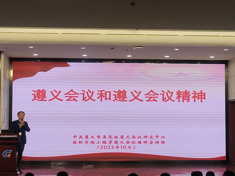 研学交流会上,史京军向阳羡高中师生们介绍了我校基本情况、专业特色等。纺织学院小绿芽遵义会议精神宣讲团队就遵义会议召开的背景、主要成果、重要意义等方面宣讲交流。随后纺织学院学工团队带领官林高中师生们先后参观了图书馆、校史馆、文化传承与创新中心和纺织科技文化馆。