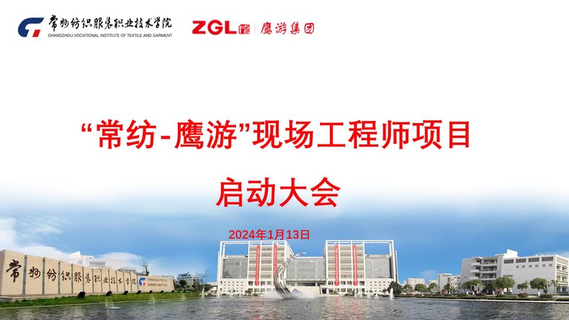 2024年1月13号上午,我院与常州神鹰碳塑造复合材料有限公司合作实施的“常纺-鹰游”现场工程师联合项目启动仪式如期举行。纺织学院党总支书记高妍、纺织学院院长郭雪峰、纺织学院副院长卞克玉、纺织品检验与贸易专业教研室主任杨静芳、骨干教师刘传永及27名入选学生参与了启动仪式;常州神鹰碳塑复合材料有限公司副总经理张旭、副总经理韩爱美出席启动仪式。启动仪式由韩爱美副总经理主持。