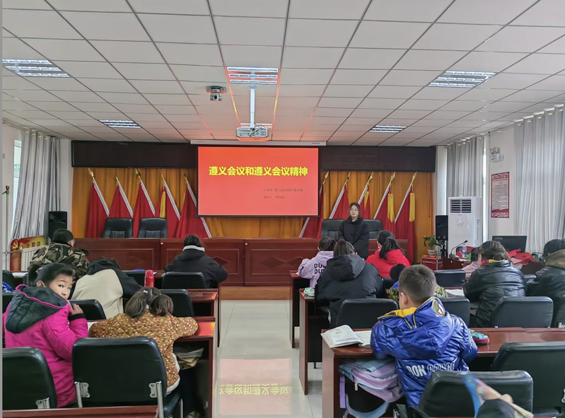 2024年1月19日纺织学院小绿芽“遵义会议精神”宣讲团在宁夏回族自治区银川市金凤区和顺新村社区组织一次遵义会议精神宣传。来自和顺新村周边的青少年学员80余人参加活动。志愿者朱院院(纺织2332班)同学担任主讲。