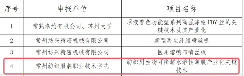 为表彰和鼓励在科技活动中取得优异成绩的单位和科技工作者,2023年江苏省纺织工程学会开展了科学技术奖的评选工作,我校乔志勇、丁长明、赵宜涛、陶磊团队和江苏瑞澜特新材料有限公司合作研发的“纺织用生物可降解水溶性薄膜产业化关键技术”获得此项荣誉。