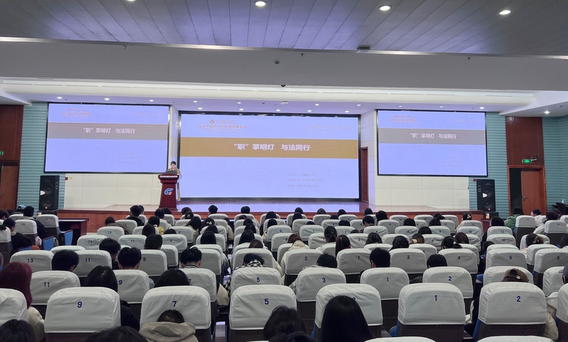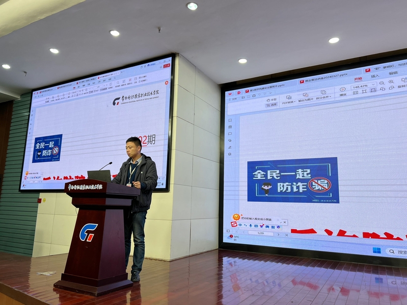 最后,史京军总结发言,指出作为即将踏上实习岗位的学子,提前了解劳动法的相关法律法规还是非常有必要的,要学会用法律维护自己的权益,用法律去保护自己。此外,还特别提出了防诈骗的重要性,结合近期发生的案例给同学们敲响警钟,希望大家把防诈意识内化于心,外化于行。