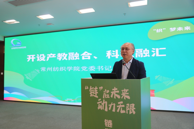 会上,裕源灵泰面料科技有限公司、东方伊思达染织有限公司、江苏华崛智能科技有限公司、江苏常环环境科技有限公司等企业代表进行了专题发言;常州市纺织工程学会会长张国成代表行业作为专题发言;我校党委书记吴访升围绕产教融合、科教融合作了主旨发言。他从“新、深、高”三个方面进行了阐述:一是政校企行通过链盟党建平台,组织联建、阵地联用、人才联育、发展联动,推动产业链与组织链、人才链、创新链、服务链深度融合,切实把党的政治优势、组织优势转化为企业竞争优势、产业发展胜势。二是产教融合。学校与链盟企业联合制定人才培养方案、标准,合作开发教材课程,提高学校人才培养适应性,支撑配合企业转型升级;三是科教融汇。政校企行共同推进科技创新与产业创新深度对接,通过组建创新中心、战略发展研究院等,把科技成果转化成产品、商品,不断形成新质生产力。