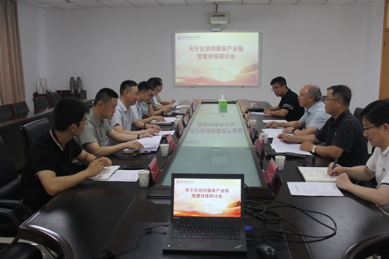 会上,天宁区工信局党组书记周忠平介绍了天宁区纺织服装和纺织机械产业链党建工作开展情况,就进一步加强产业链党建提出了初步设想。吴访升书记指出:政校企行“四联同建”打造产业链党建平台,通过组织联建、阵地联用、人才联育、发展联动,推动产业链与组织链、教育链、人才链、创新链、服务链深度融合,切实把党的政治优势、组织优势转化为企业竞争优势、产业发展胜势。天宁经开区组织人事局局长路忠华就《天宁区纺织服装和纺织机械产业链党建工作方案》进行了解读,常州纺织工程学会会长张国成等与会人员就《方案》具体内容进行了交流研讨,并就政校企行共同组建纺织服装产业链党委等相关工作形成了一致共识:产业链将坚持党建引领,提升工作质效,创新平台载体,推动各类资源融合贯通,推动纺织服装产业向高端化、智能化、绿色化、融合化方向发展。