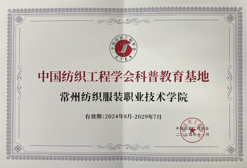 近年来,我院纺织科技文化馆先后成为中国纺织工程学会科学家精神基地,江苏省、常州市两级纺织科技文化中小学生职业体验中心。开馆以来,该基地集专业教学,包括通识教育、科普教育,以及公益社会服务等多功能于一体,展现纺织传统文化的传承以及高端纺织的科技创新。一直以来,我院师生在纺织科技领域内深耕细作,通过“非遗传承”、“乐学龙城”、“手工扎染”等一系列科普公益活动将纺织科技的魅力带入到更广泛的公众视野中。未来,我院将以此为契机,持续加强科普团队建设,提升科普服务能力,为提升全民科学素质、促进纺织行业创新发展做出更大贡献。
