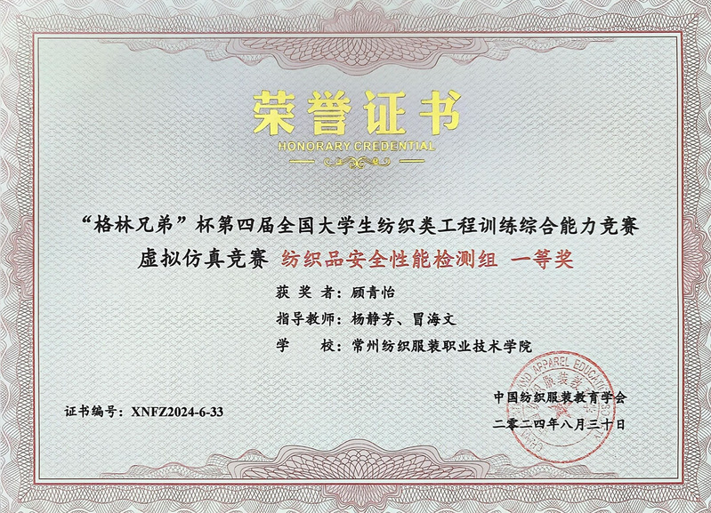 2024年11月,由中国纺织服装教育学会主办,山东科技职业学院、浙江纺织服装职业技术学院等单位共同承办的“格林兄弟”杯第四届全国纺织类大学生工程训练综合能力竞赛颁奖典礼在天津工业大学圆满举行。本次大赛高职赛道吸引了40所院校参与,报名参赛人次达2309。