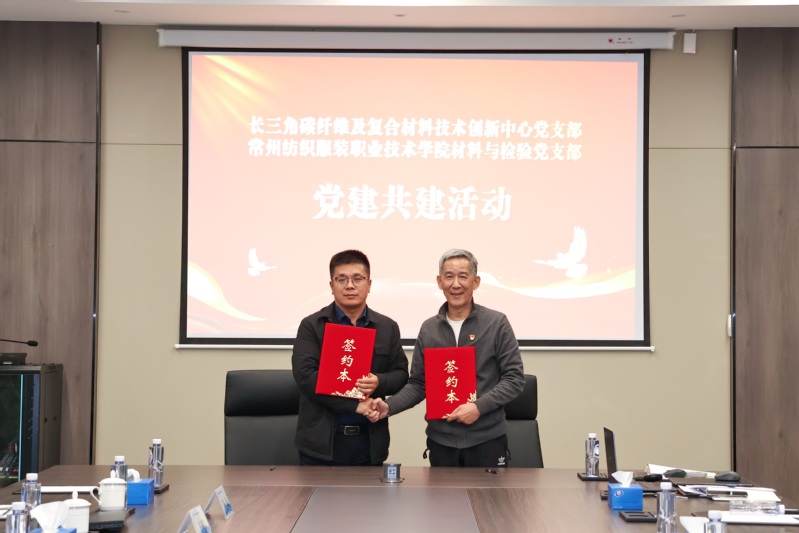 活动中,两个支部举行了党建共建签约仪式。侯喜军代表材料与检验党支部与创新中心益小苏共同签署了《党建共建合作协议》。双方一致认为,坚持党建引领,推动教师专业党支部与产业链上企业党支部共建是贯彻落实江苏省产业链党建积极探索,是共同探索党建与业务深度融合的新路径,有利于推动专业链与产业链的融合创新,产教深度融合,为推动双方高质量发展注入新动力。签约仪式后,双方党员共同参观了长三角碳纤维及复合材料技术创新中心科技馆和科创工场。