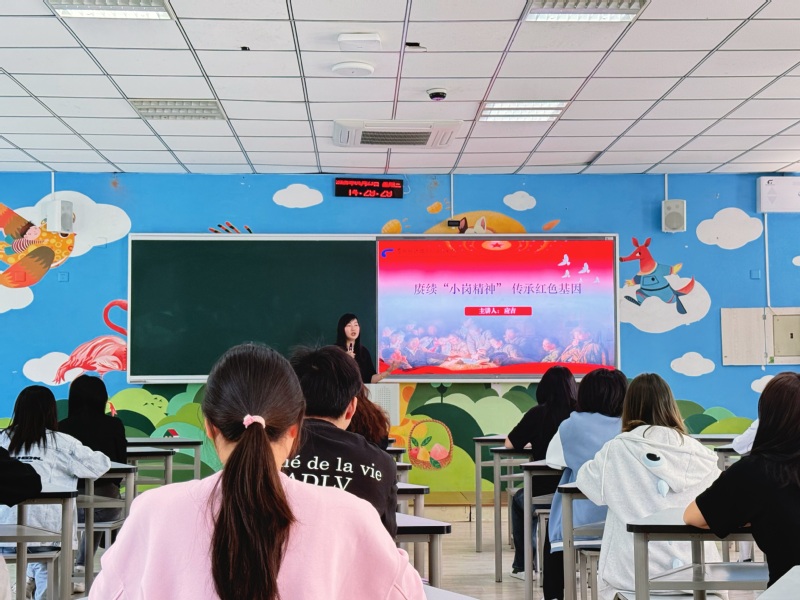 活动现场,智能纺织与材料学院学生工作党支部书记、“六边形” 辅导员工作室负责人应吉老师以“赓续‘小岗精神’ 传承红色基因”为题,为同学们带来了一场深刻且生动的小岗红色思政课。她深入挖掘小岗村的改革历程,将那段波澜壮阔的历史徐徐展开,生动讲述了小岗村村民们敢于创新、勇于改革的壮举,让同学们深刻体会了 “小岗精神” 的内涵与力量。