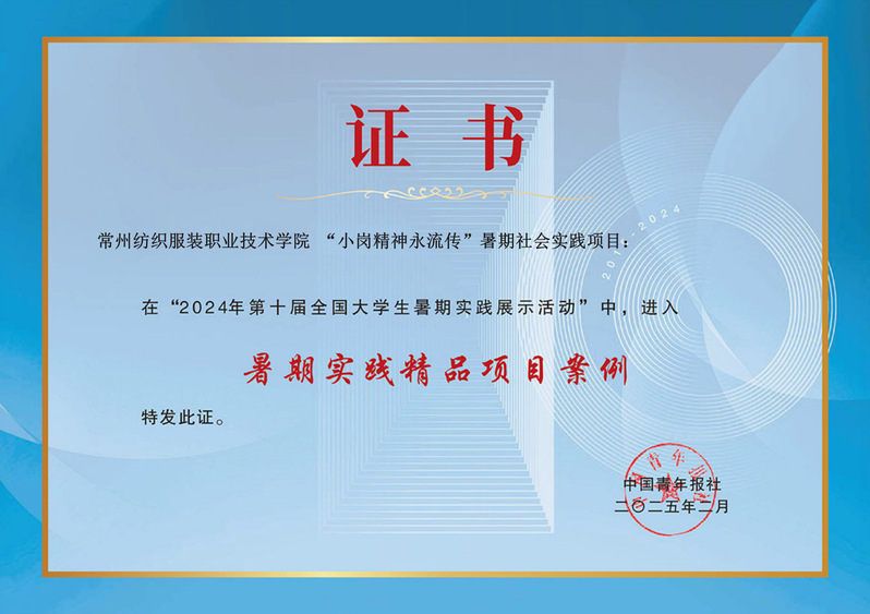 在智能纺织与材料学院学生工作党支部书记、“六边形”辅导员工作室负责人应吉老师的带领下,项目团队连续两年走进中国农村改革发源地——安徽省小岗村,调研红色文化,开展志愿服务,助力乡村振兴。该项目已获得省市级荣誉7项,多次受到常州电视台、武进新闻电视台、常州日报、武进日报采访报道。