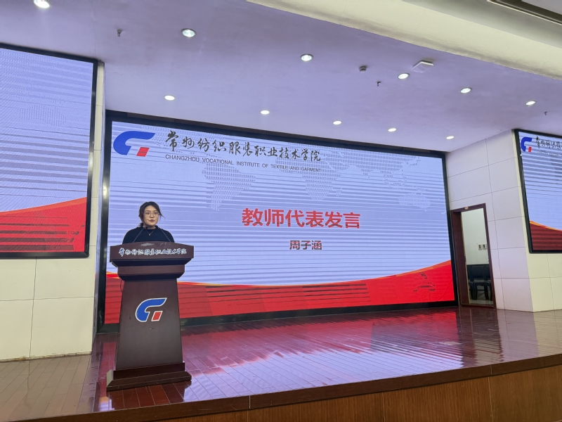 最后,常州虹纬纺织有限公司技能大师沈桥庆以“传承红色基因、弘扬工匠精神”为题开展专题讲座,结合企业实际案例,剖析智能纺织技术的应用场景与发展方向,为师生带来行业一线的前沿洞见。