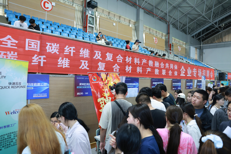 2025年5月21日下午,全国碳纤维及复合材料产教融合共同体、碳纤维及复合材料产教联合体专场招聘会在常州纺织服装职业技术学院隆重举行。本次招聘会由江苏省教育厅、江苏省人力资源和社会保障厅指导,常州纺织服装职业技术学院联合碳纤维及复合材料产业链重点企业共同举办,旨在搭建校企精准对接平台,推动新材料领域技术技能人才培养与产业需求深度融合。
