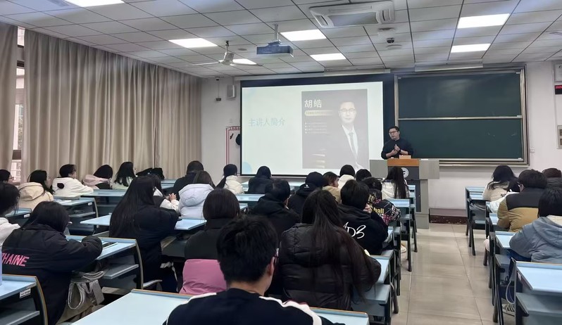 分享环节中,胡皓结合自身多年深耕纺织服装行业的实战经历,围绕三大核心维度展开干货分享。在行业发展趋势板块,他精准剖析当前纺织行业智能化、绿色化的转型方向,让同学们清晰把握行业未来脉搏;谈及岗位能力需求,他强调专业技能、创新思维与沟通协作能力的同等重要性,为学子们的能力提升指明重点;针对简历制作技巧,他分享了突出实践经历、匹配岗位需求的实用方法,助力同学们在求职初期抢占优势。胡皓坦言,自己刚入行时也曾面临方向迷茫的困境,他以“明确目标后深耕细分领域,方能构筑不可替代的核心竞争力”为核心经验,搭配多个真实职业成长案例,生动拆解从职场新人到行业骨干的进阶路径。互动答疑环节,他针对同学们普遍关心的实习单位选择、跨领域转型难点等问题逐一细致解答,务实的建议和真诚的分享让现场不时响起热烈掌声。