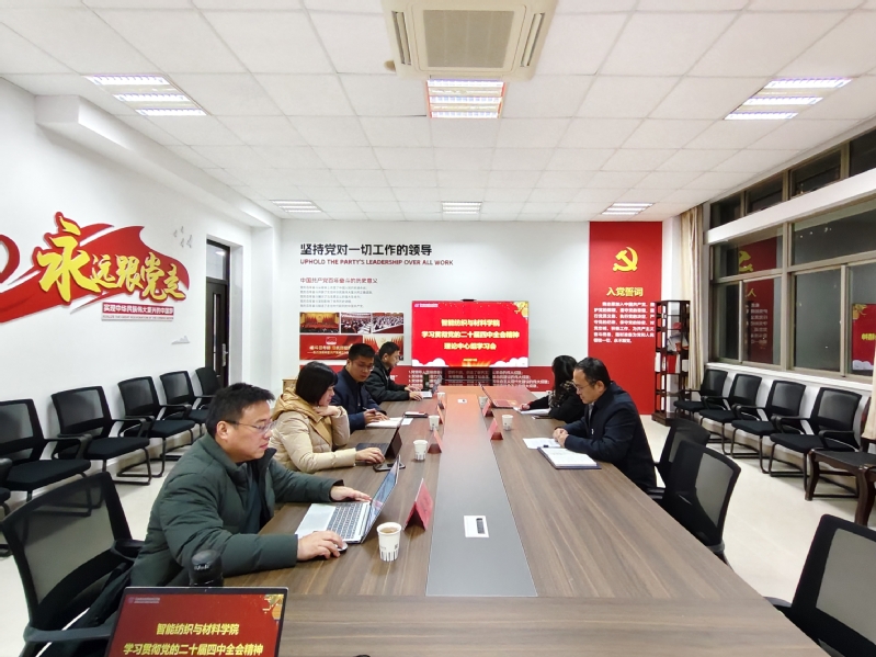 为深入学习贯彻党的二十届四中全会精神,切实把思想和行动统一到党中央决策部署上来,智能纺织与材料学院党总支于2025年12月31日在4B310会议室召开了理论学习中心组学习会。校党委委员、副院长马昀出席会议并讲话,学院党总支委员参加了会议。会议由党总支书记侯喜军主持。