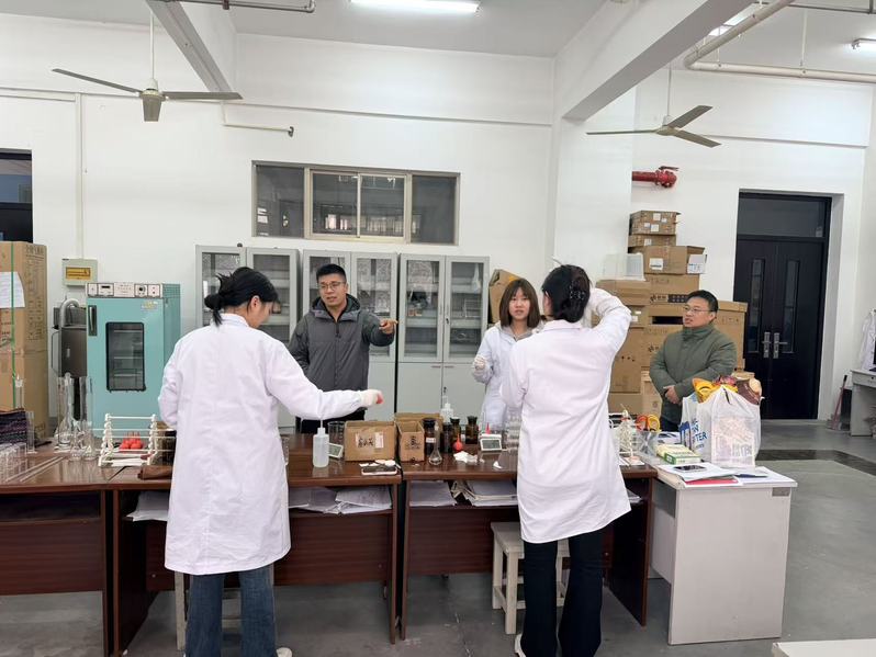 在纺织品检验与贸易赛项训练现场,领导们驻足并参与观看学生汇报展示内容讨论,对他们清晰的逻辑和专注的态度给予高度肯定;在化学与实验技术赛项训练现场,仔细查看操作流程,叮嘱指导教师既要严格要求,也要关注学生的身心健康;在环境检测与监测赛项训练现场,观看学生操作精密设备,提醒老师和学生注意实验室环境卫生,营造良好的学习和训练环境。在慰问过程中,领导们指出技能大赛是展示职业教育成果、检验教学质量的重要平台,叮嘱指导教师们继续发扬精益求精的教风,悉心指导、科学备赛;鼓励参赛学生们以饱满的热情和昂扬的斗志投入训练,勇于挑战自我,力争在大赛中取得优异成绩,为校争光。