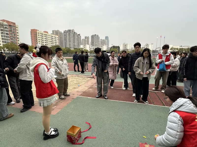 本次运动会打破传统运动局限,将竞技性与趣味性深度融合,精心设置“同舟共济”与“活力投射”两大特色赛项。同舟共济区域,同学们两两分组夹球前行,默契配合、奋勇争先,在侧身迈步中完成速度与协作的考验,现场不时响起阵阵欢笑与加油声;活力投射区域则充满了紧张与期待,同学们凝神聚力、精准投掷,每一次成功投中都引来现场喝彩,大家在比拼中感受运动乐趣,在互动中拉近彼此距离。活动现场秩序井然,赛项同步推进,同学们在轻松愉悦的氛围中加强交流、增进友谊,充分展现了团结拼搏、凝心聚力的青春风采。