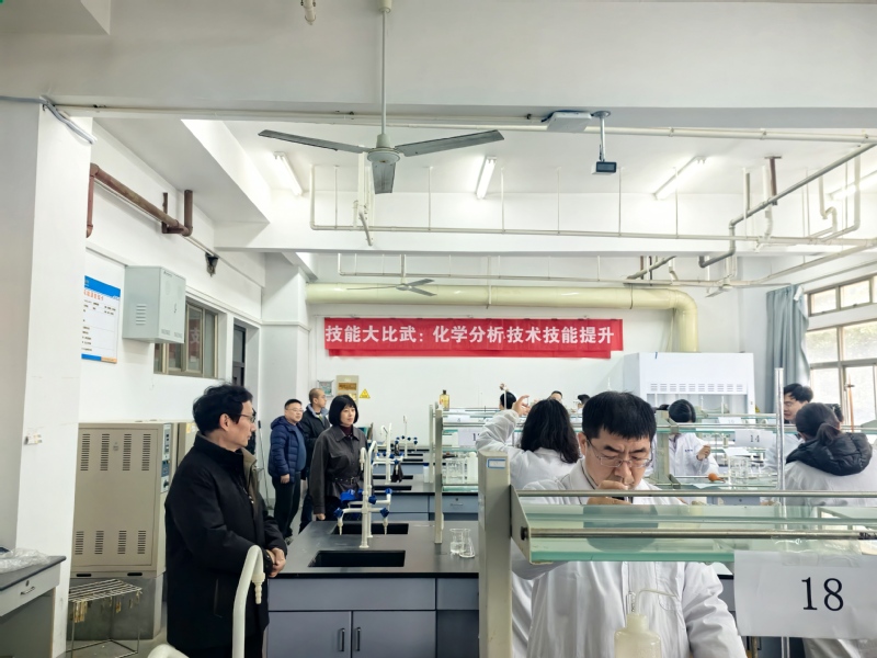 比赛共设织物性能检测、化学分析、纺织品设计三个赛项,特邀行业企业专家担任裁判,于13:00正式开始。织物性能检测赛场上,教师们运用显微镜、密度镜等仪器精准分析织物结构与成分;化学分析赛场上,选手们规范完成标准溶液的配制与标定,从称量到滴定步步严谨;纺织品设计赛场上,教师们借助数字化软件进行创意设计,充分展现专业技能与创新思维。整个比赛过程紧张有序,专家们从操作规范、数据准确性、创新性等维度进行综合评分,对参赛教师展现出的扎实专业功底和良好职业素养给予高度评价。