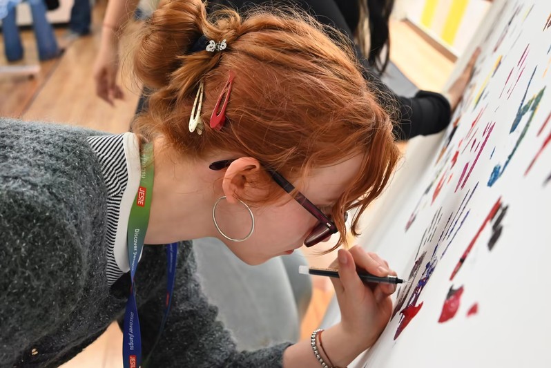 活动最后,中外师生齐聚一堂,共同在纪念展板上按下手印、签下姓名,一个个手印交错相融,一个个名字并肩排列,成为中德青年友好交流、文化互鉴的珍贵见证,也为本次纺织文化交流活动画上了圆满的句号。